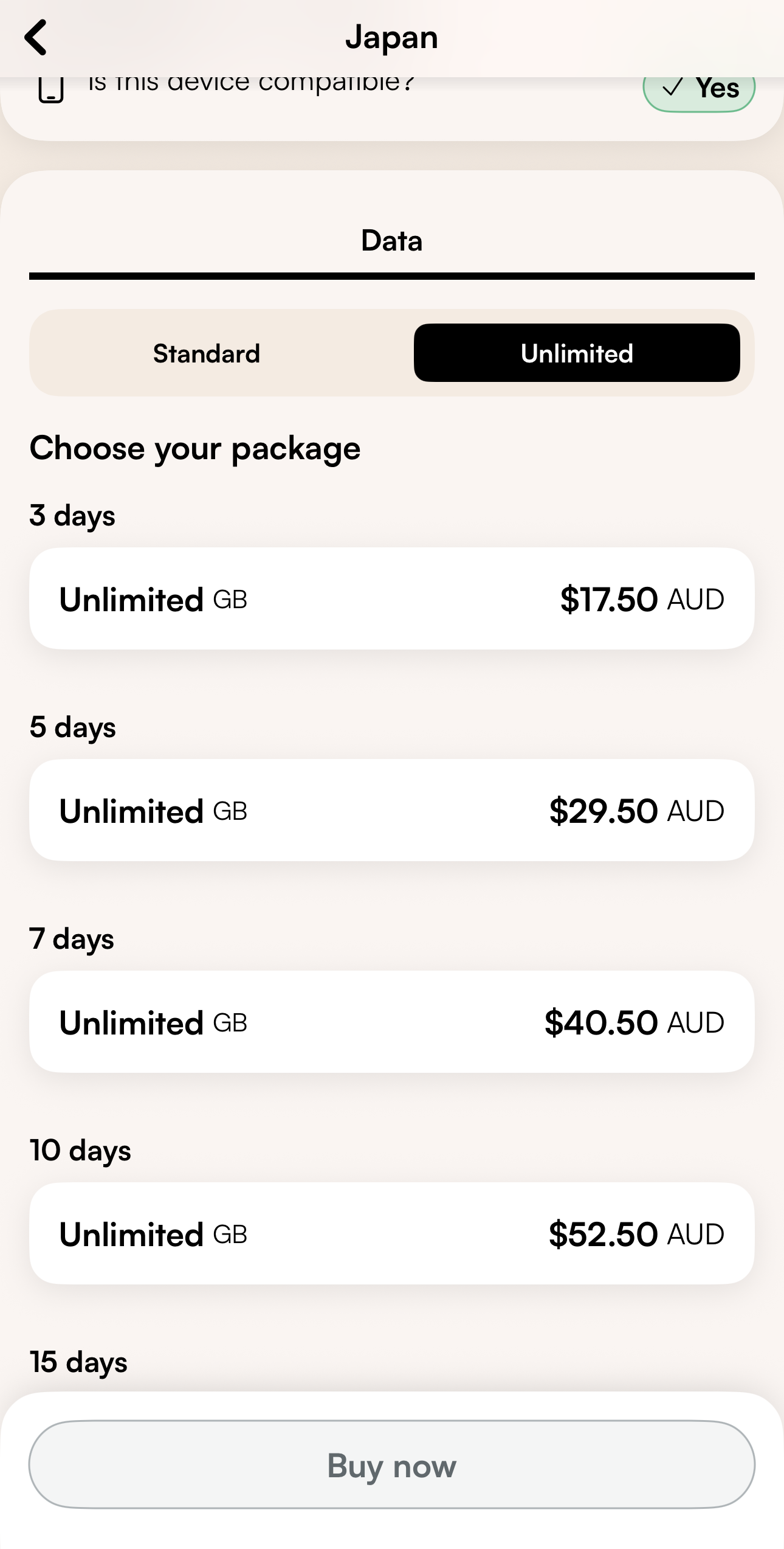 Airalo option for Japan eSIM