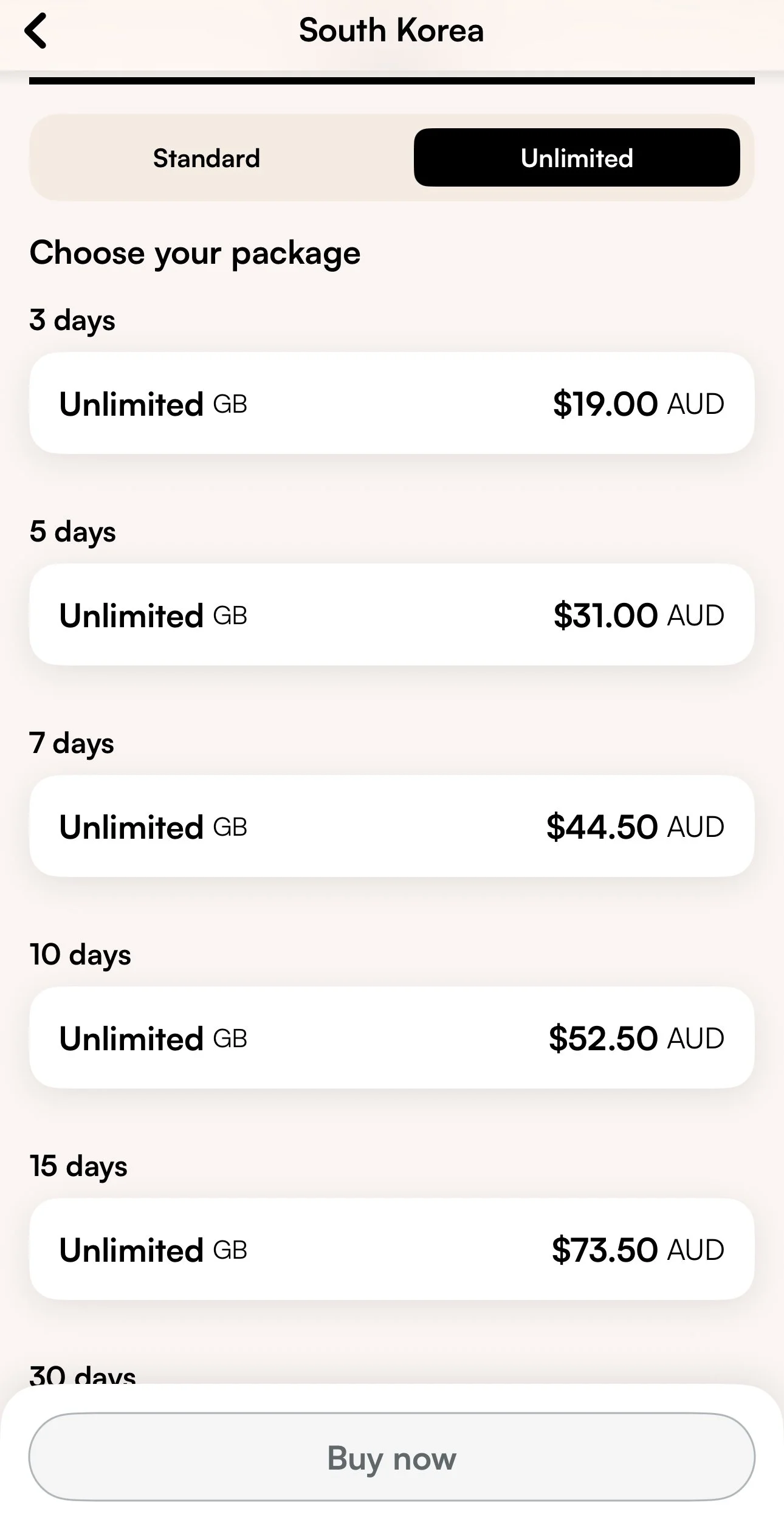 Before travelling, I activated international roaming, which costs $25 for 4GB with a 14-day expiry.